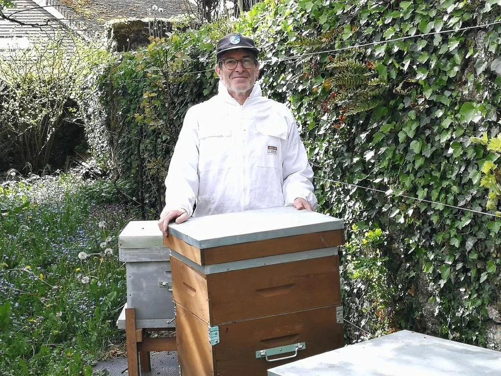 Jean-Luc Gatien, apiculteur amateur, dans son jardin de Damigny. © Ouest-France
