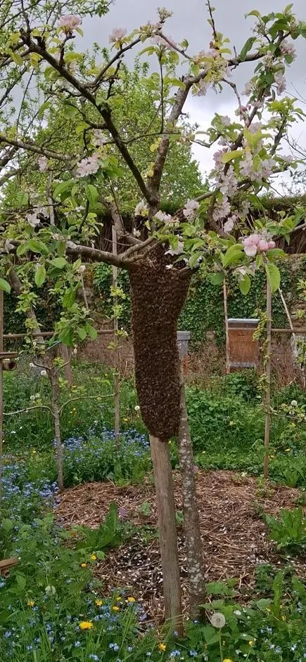 Dame Nature a gratifié d’un cadeau royal un nouveau cueilleur d’essaims en déposant au cœur de son jardin sauvageon, un bel essaim, lors du week-end pascal, à Damigny (Orne).
