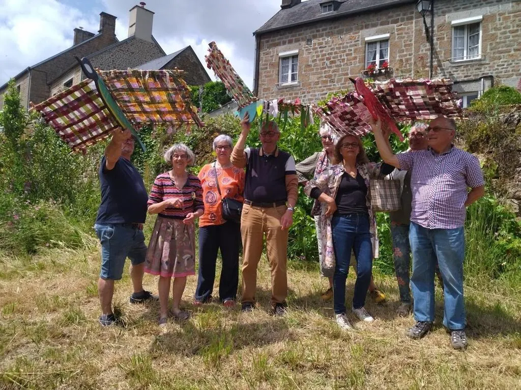 Des membres de l’équipe de bénévoles, qui a réalisé des oiseaux, dans le cadre du thème de l’envol, sous la direction de Gine Guibout, coordinatrice artistique. Ils seront exposés, ainsi qu’une chenille géante, dans le champ des Claudes. © Cavée des Artistes