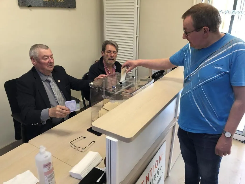 À Vimoutiers (Orne), Jacques est en train de voter devant le maire Guy Romain et son adjoint aux finances, Philippe Touchain. © Ouest-France