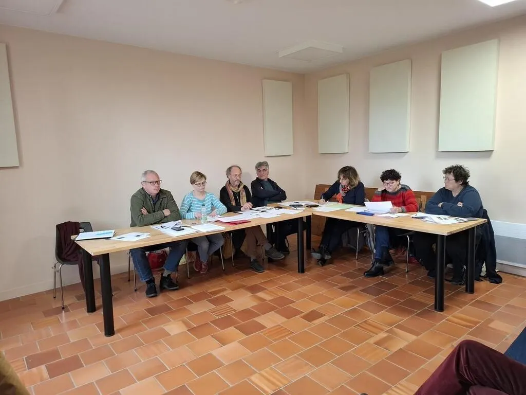 Les membres du bureau de l’association en assemblée générale. © Les Amis de Saint-Céneri