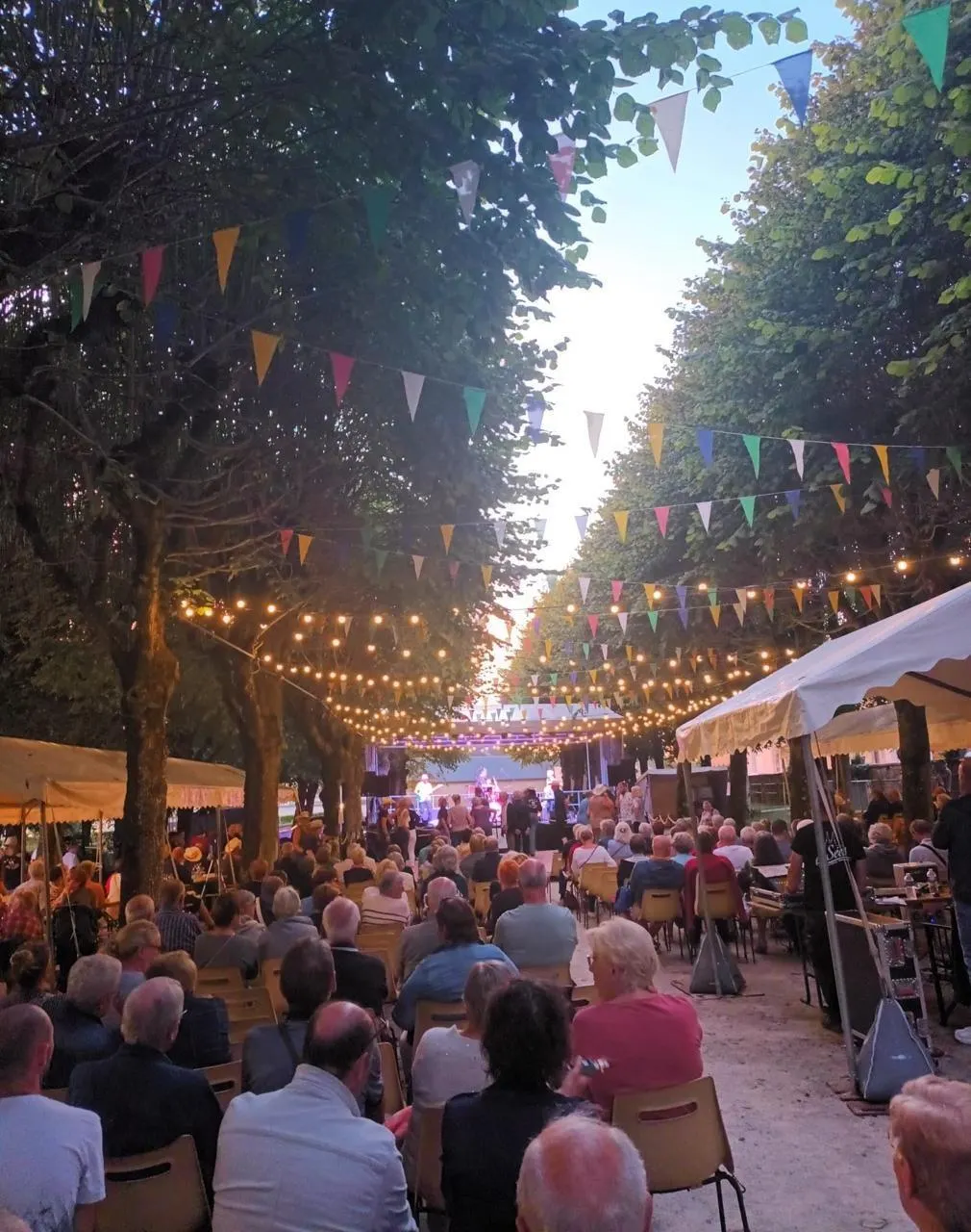 Comme chaque été, au mois d’août, le dimanche soir, le cours des Fontaines à Sées (Orne) s’illumine et s’anime le temps d’un concert. Guirlandes et fanions donnent un caractère festif à ce lieu si paisible en temps normal. Prochain rendez-vous dimanche 11 août 2024.