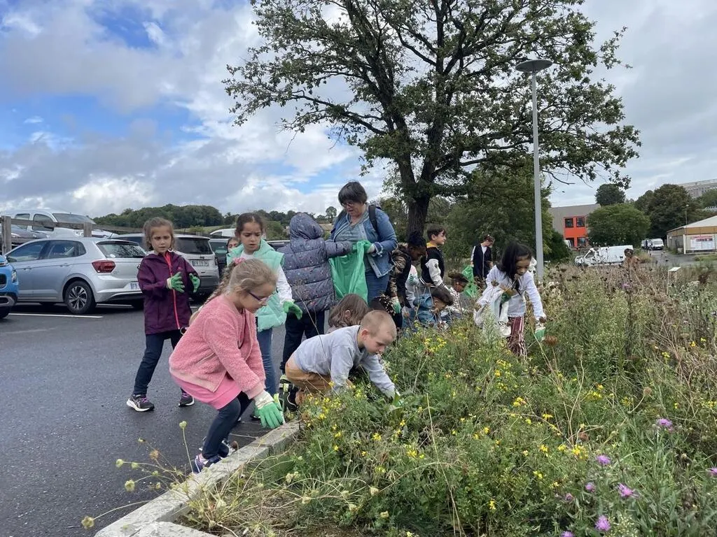 En septembre 2023, les CP de Morin-Lafontaine à Flers, dans l’Orne, ont nettoyé la coulée verte de ses déchets. © Ouest-France /ARCHIVES