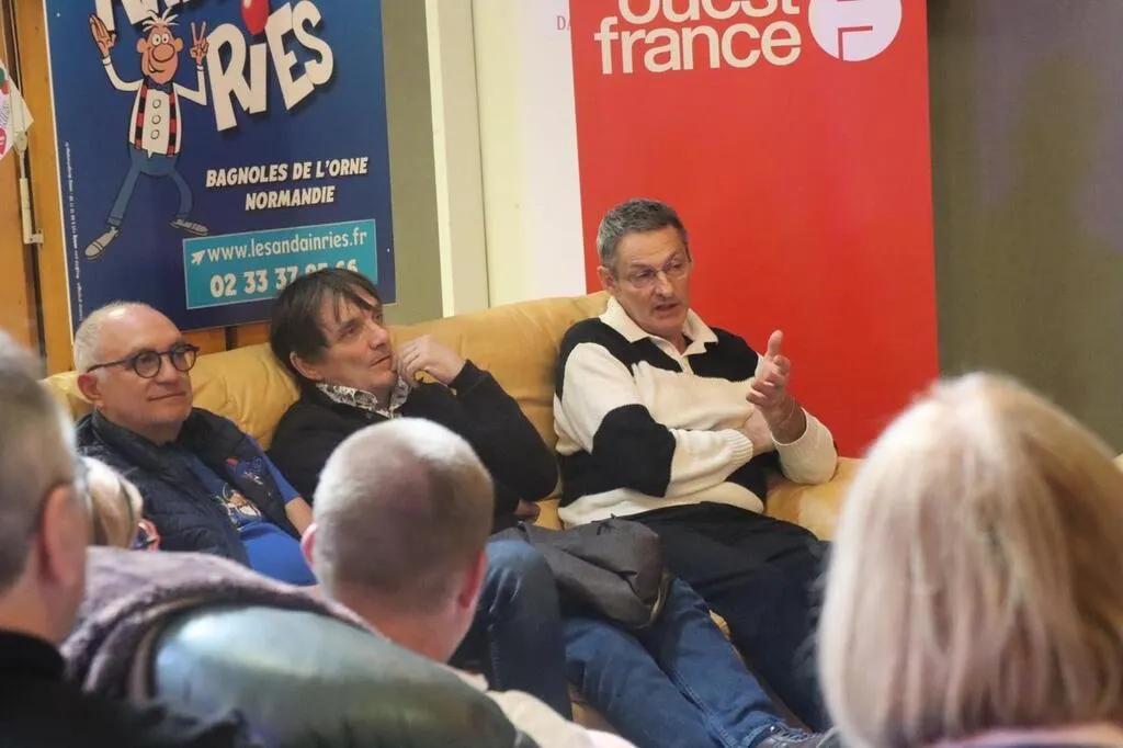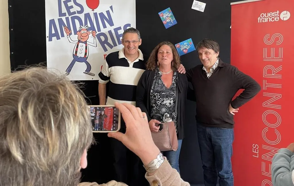 Jeudi 17 avril 2025, une vingtaine de lectrices et de lecteurs du journal Ouest-France ont rencontré trois artistes (Vincent Dubois des Bodin’s, Vincent Aucaigne et Philippe Sohier) du festival d’humour les Andain’ries, ainsi que son cofondateur Serge Bretel à Bagnoles-de-l’Orne (Orne).