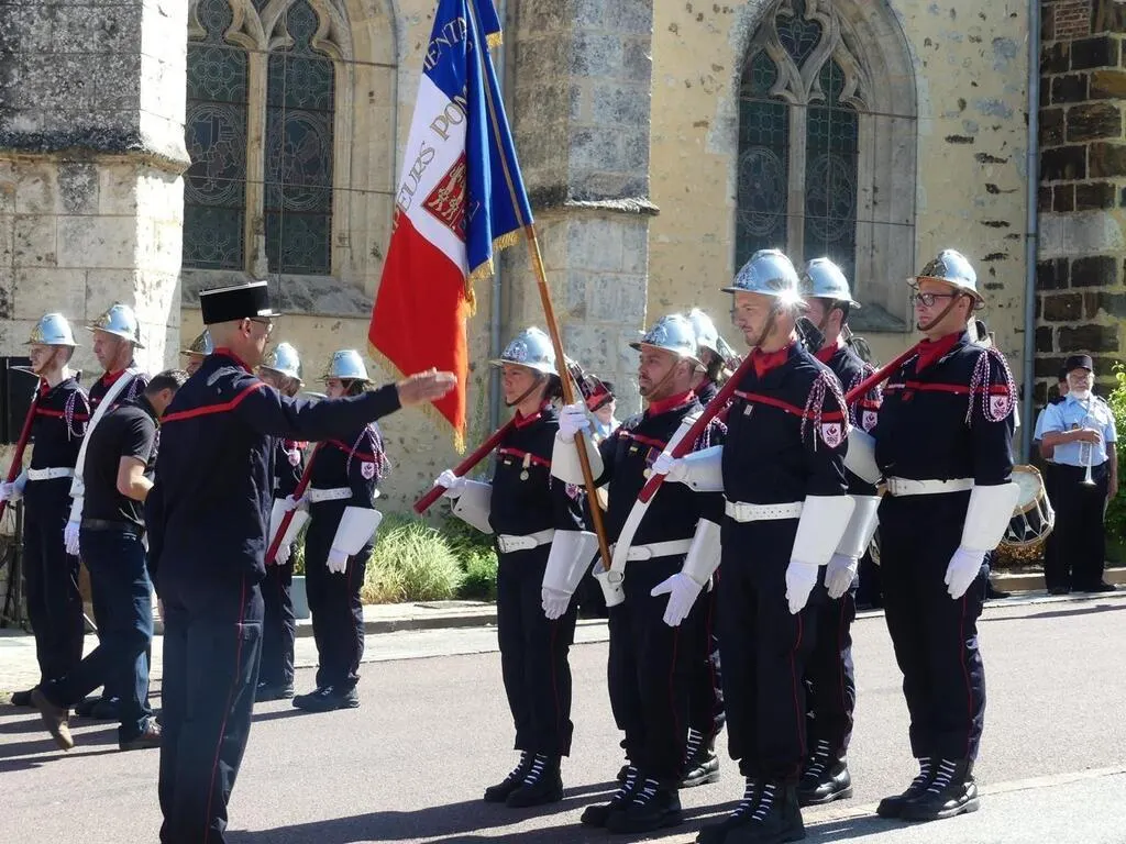 Les représentants départementaux du SDIS étaient réunis pour la journée nationale des sapeurs-pompiers et la transmission du drapeau de la caserne d’Écouché à celle de Bretoncelles (Orne).