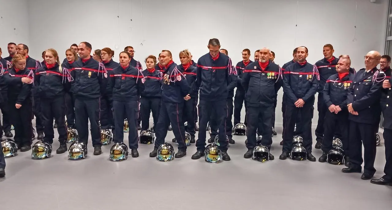 Une tradition bien ancrée, la célébration conjointe de la Sainte-Barbe entre les centres de Chanu et Tinchebray-Bocage. Ici à Chanu en 2023. © Archives Ouest-France