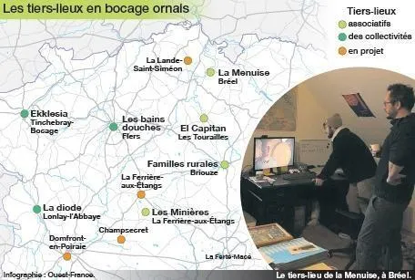 Depuis quelques années, de nombreux tiers-lieux se sont créés ou sont en projet dans le Bocage ornais. « Un mouvement sociétal s’opère, dans le Bocage, selon Clément Majchrzak, qui a cofondé la Menuise, à Bréel (commune déléguée d’Athis-val-de-Rouvre). Un exode urbain des trentenaires et des quadragénaires s’opère, et tous ces nouveaux habitants ...
