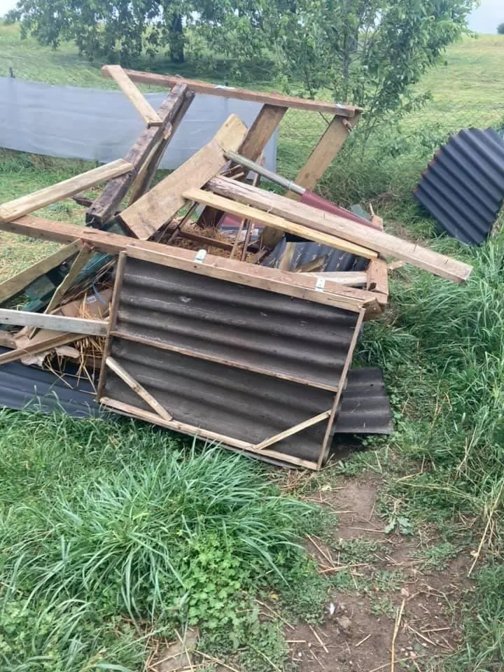 À Louplande, la commune n'a pas été épargnée par l'orage survenu dans la nuit du 16 au 17 juin 2021. Ici, le poulailler d'une habitante, complètement détruit. DR