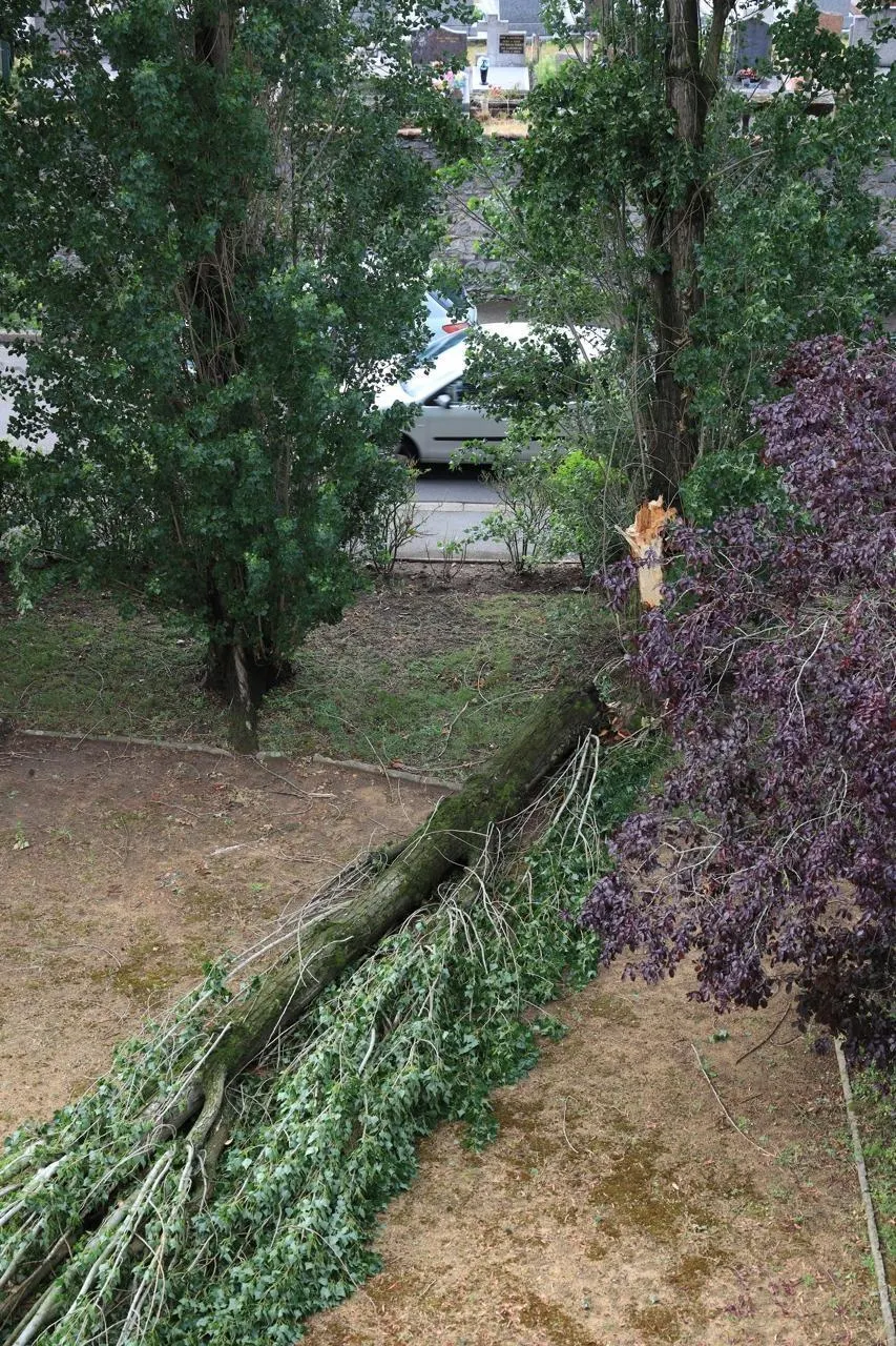 L'orage a fait quelques dégâts, comme ici, où un peuplier de 15 mètres de haut s'est retrouvé coupé en deux. Ouest-France
