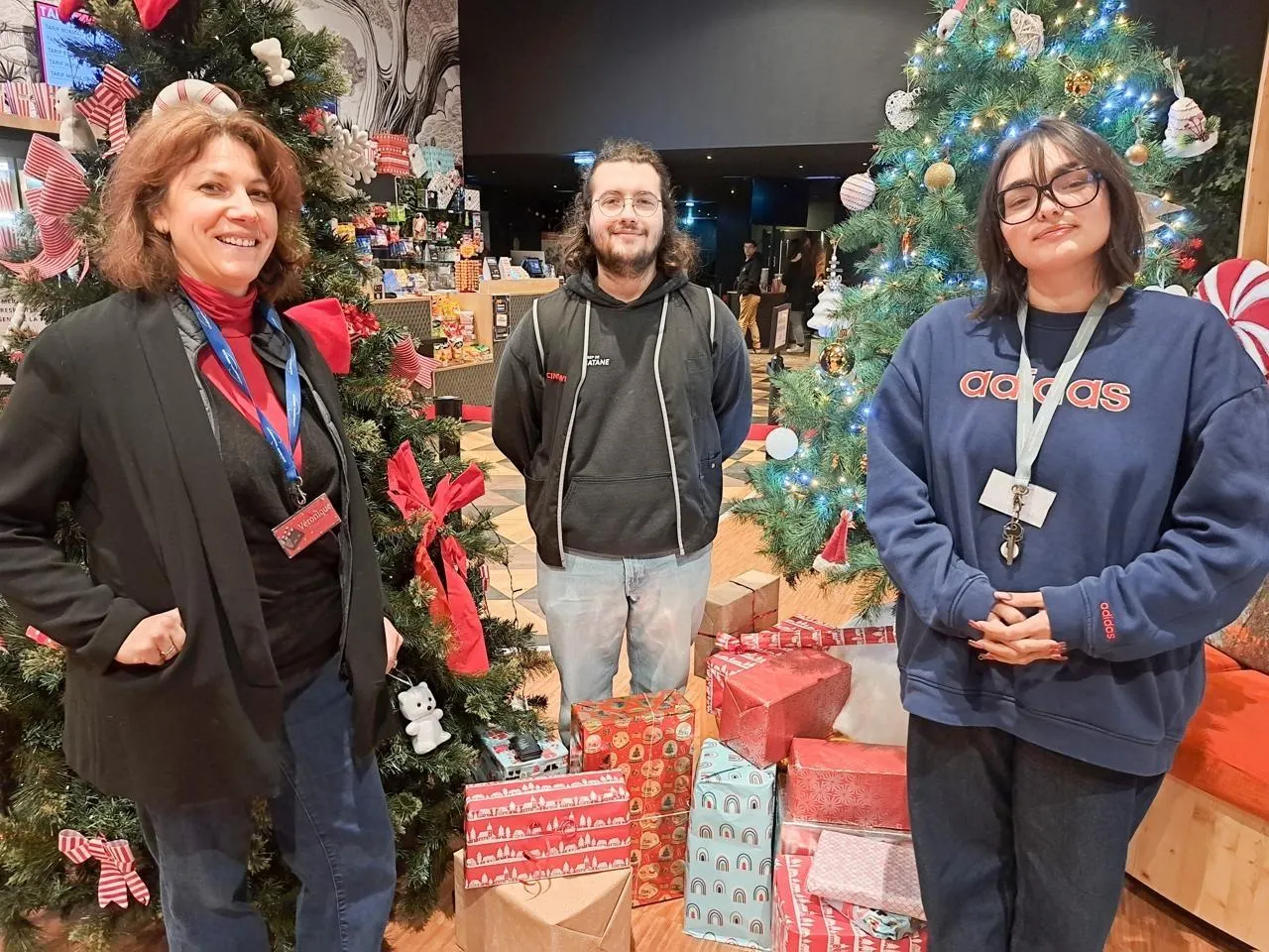 Véronique Galland, directrice du Cinélac, avec Martin et Zoé, agents de la structure. © Ouest-France