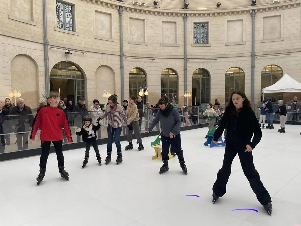 La patinoire synthétique est installée sous la coupole de la halle au Blé, à Alençon, pendant toutes les vacances de Noël. © Archives Ouest-France