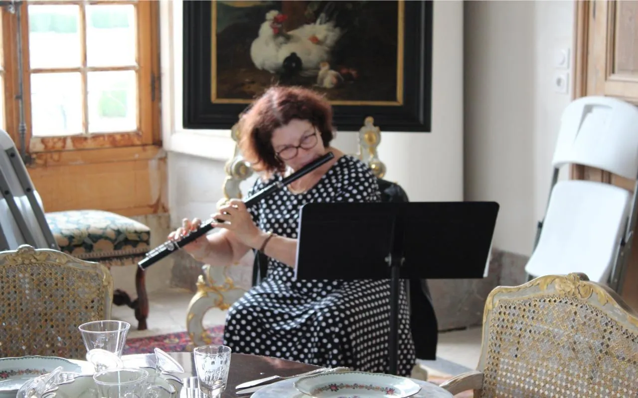 Le château se visite en musique grâce à Diane Mitanchez, flûtiste et directrice du conservatoire de Terres d’Argentan © Ouest-France