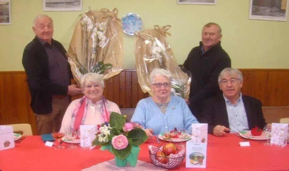 Jean-Pierre Feret, conseiller général du canton de Gacé, avait pris place autour de la table, ainsi que l’abbé Christian Christy, curé de la paroisse, et la majorité des conseillers municipaux des deux villages. Les maires ont souhaité la bienvenue à tous, avec une pensée particulière à l’intention des disparus de l’année et des absents pour raison de maladie. « Merci à Liliane Tocqueville et Janine Barbey pour la décoration de la salle. » Ces agapes furent aussi l’occasion de mettre les doyennes à l’honneur : Monique Moussu pour La Fresnaie-Fayel (78 ans) et Liliane Tocqueville (77 ans), pour Ménil-Hubert, elles ont reçu une composition florale des mains de leur maire.