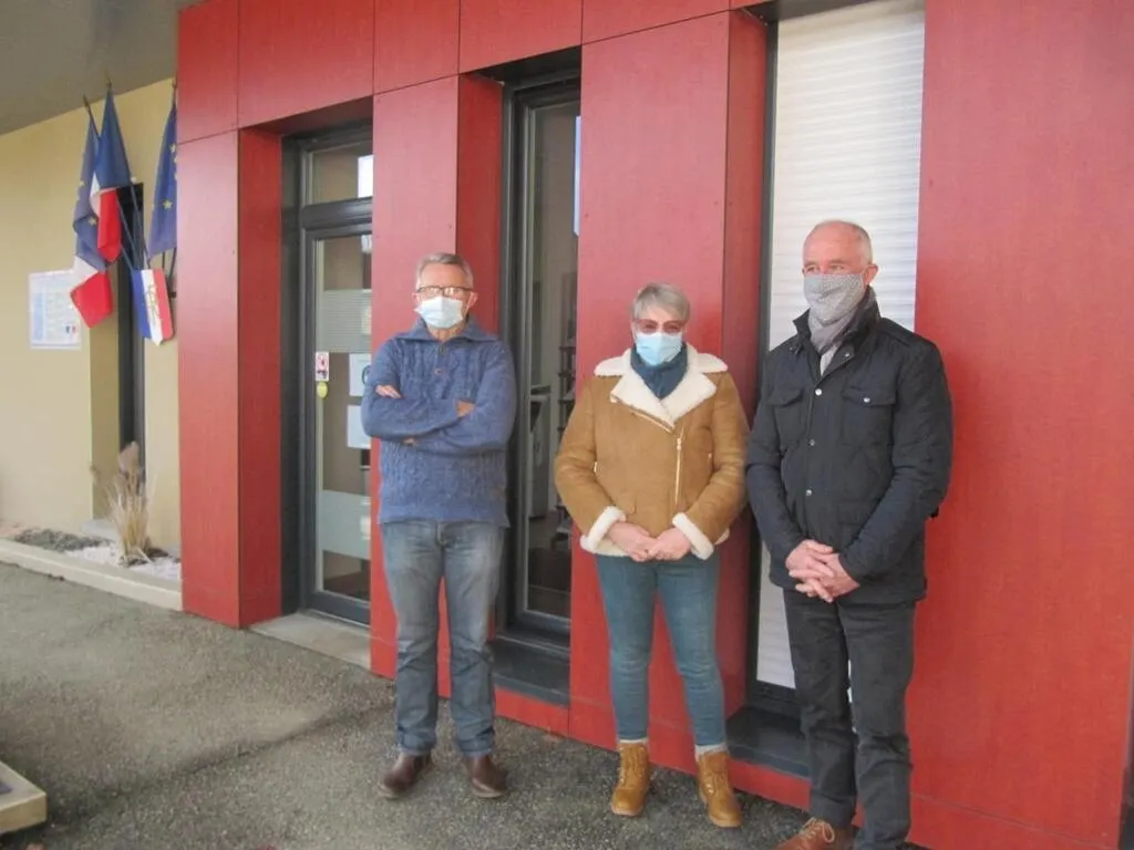 De gauche à droite : Jacky Alleau, Annie Desoeuvre et Gilbert Guérin, qui rappellent qu'« il est toujours à l’ordre du jour de sortir masqué dans l’un et l’autre des bourgs de la commune. » © Ouest-France