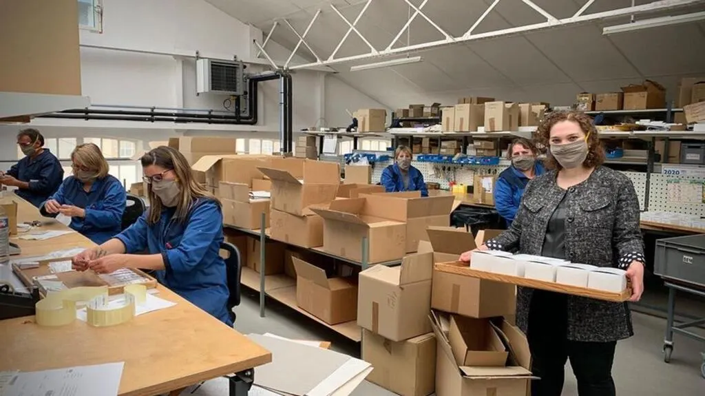 « Tout est prêt, les protocoles de sécurité sont carrés, les salariés ont tout pour être protégés, indique la jeune femme. Nous avons la chance d’avoir un site très grand, pas besoin de pousser les murs ! » Pour l’instant, un tiers des 36 salariés est revenu travailler. « Il faut adapter : avant et après chaque coup de téléphone, on désinfecte. » Bohin se pique d’être à la pointe de la reprise : « On est tellement heureux de pouvoir retravailler avec les petites merceries qui souffrent depuis un mois et demi… »