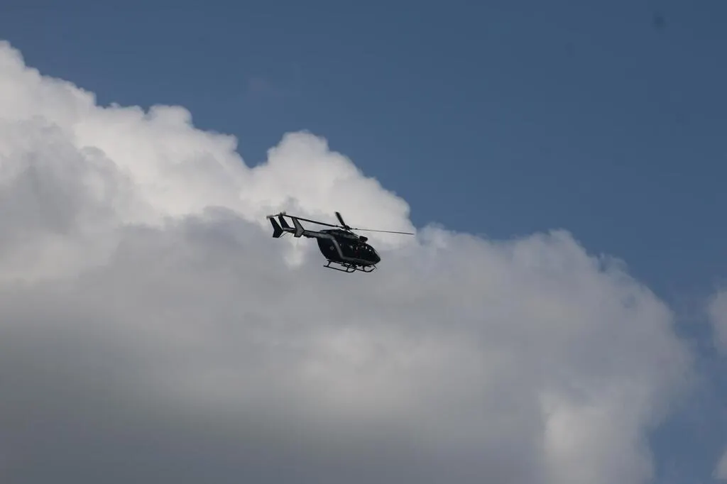 L’hélicoptère de la gendarmerie est arrivé à 15 h 10 au centre pénitentiaire de Condé-sur-Sarthe. À 15 h 30, il avait redécollé avec Mohamed Amra à son bord. © Ouest-France