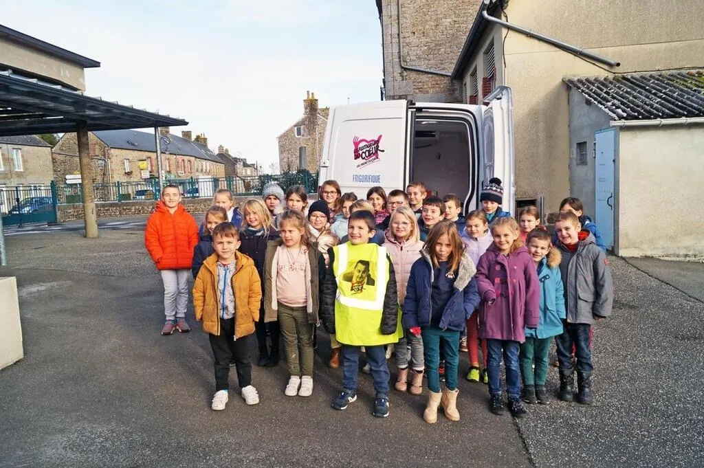 Les enfants de l’école des Coquelicots de Montsecret attendaient avec impatience le passage du camion des Restos du CÅ“ur. © Ouest-France