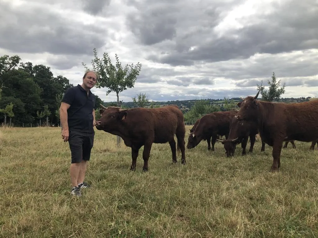 Jean-François Guillouet-Huard entouré de ses salers, à Montilly-sur-Noireau, dans l’Orne. © Ouest-France