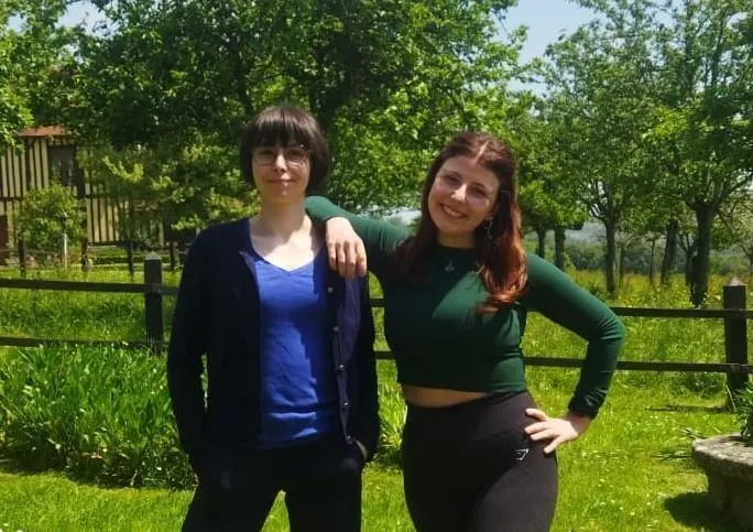 Camille Échaniz (à gauche) et Camille Gaillard, les deux jeunes femmes en service civique qui animent le tiers-lieu de Mont-Ormel. © Ouest-France