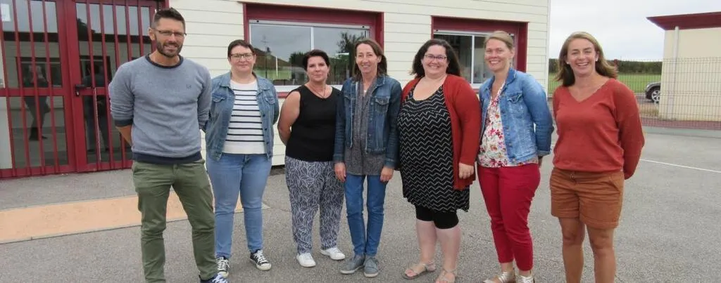 De gauche à droite sur la photo : Cédric Gaddini, directeur et enseignant en CM1 et CM2, Stéphanie Lesaule, assistante aux enfants en situation de handicap ( AESH), Cécile Leray, ATSEM, Marie-Laure Villette, enseignante de maternelle, Sabine Jouguet, enseignante de CE2, Orane Croison, complément de direction, Sandy Fouchet, enseignante en CP et CE1. Ils et elles seront en charge de 49 élèves. Les cours auront lieu les lundis, mardis, jeudis et vendredis de 8 h 45 à 12 h et de 13 h 45 à 16 h 30.