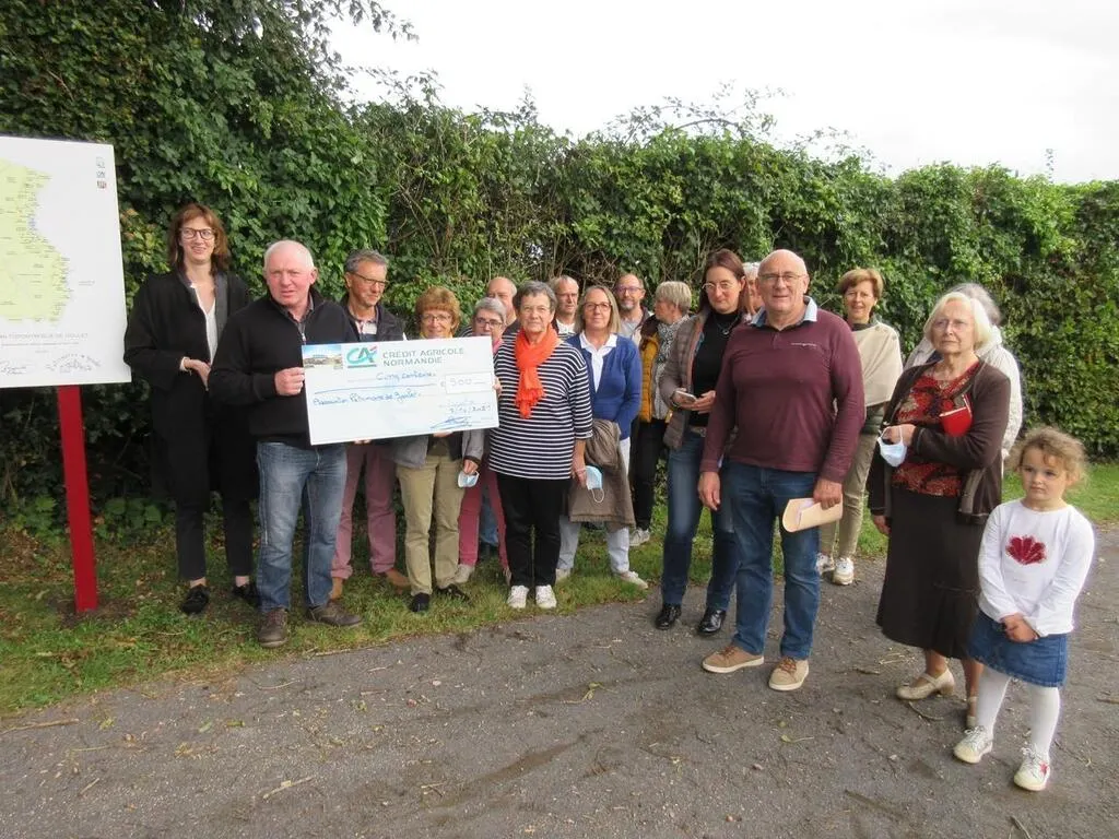 Ségolène Reynen-Cartier, directrice d’agence de cette banque à Écouché-les-Vallées a remis le chèque à Jacqueline Maillard-Mazer, présidente de l’association. L’enthousiaste présidente avait programmé une balade sur le chemin des routoirs. Toute l’assemblée a pu ainsi découvrir le panneau toponymique, la culture du lin et les vestiges des routoirs, ces cuves creusées à même le sol où l’on faisait rouir les tiges de lin. « Il y a eu jusqu’à 23 », a-t-elle précisé.