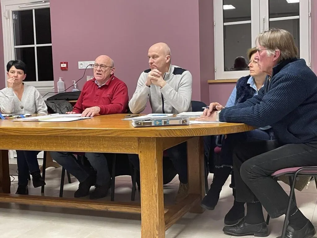 photo  gilles mallet, maire de monts-sur-orne (en pull rouge) a exposé au conseil municipal les paramètres du projet éolien.  ©  ouest-france 2