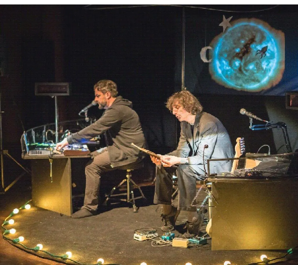 Hubert Jégat et Richard Graille proposent une lecture spectacle nourrie de poésies, de musiques et de contes, sur les étoiles, les astres, les univers inconnus… Des récits d’un autre temps… Celui où les étoiles illuminaient la nuit des premiers hommes et les invitaient à imaginer des histoires.