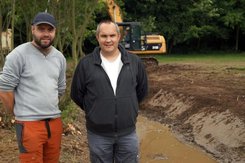 Olivier Houdayer, en charge des travaux, et Patrice Gautier, président de la Gaule Tinchebrayenne, qui se réjouit de ces travaux qui ne pourront qu’améliorer le milieu piscicole. © Ouest-France