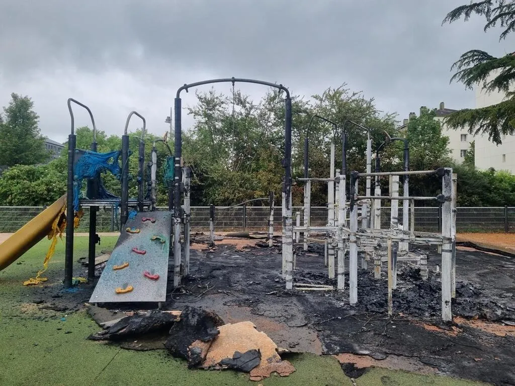 Une aire de jeux pour enfants a été incendié au quartier Saint-Sauveur à Flers, dans l’Orne. © Ouest-France
