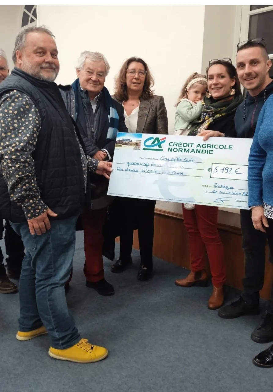 Remise du chèque à l’association Une chance inouïe pour Ava. © Ouest-France