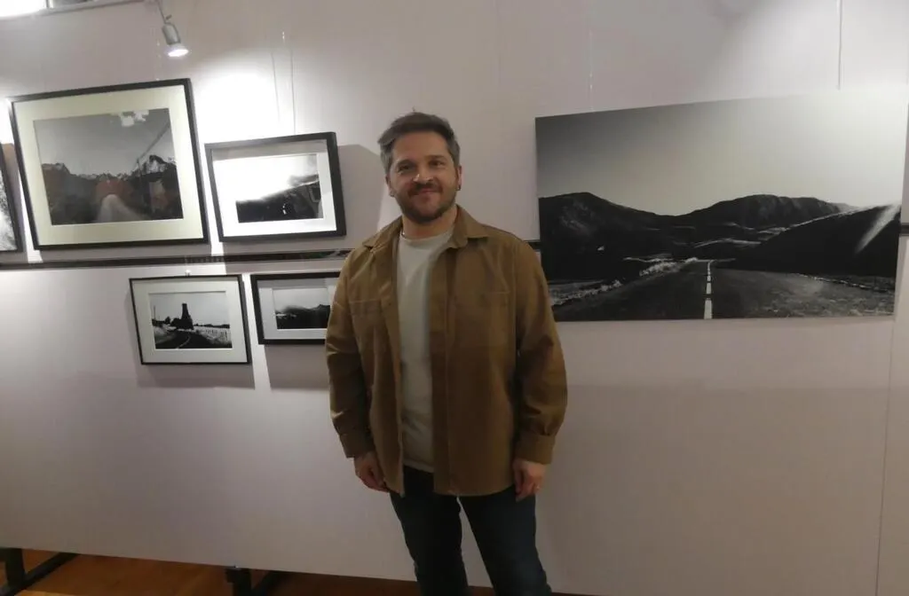 Julien Ysebert devant plusieurs de ses photographies © Ouest-France