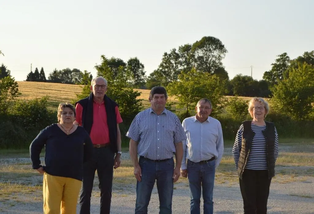 De gauche à droite : Sylvie Renou, deuxième adjointe, Alain Rouault de Coligny, troisième adjoint, Michel Marot, maire, Didier Demoncheaux, premier adjoint, et Odile Segouin, quatrième adjointe. © Ouest-France