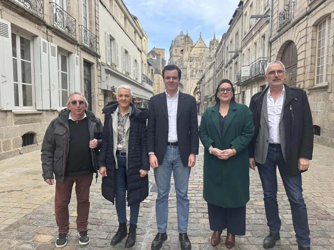 La liste « Retrouver Alençon » menée par Oscar Piloquet (au centre), candidat aux élections municipales 2026 à Alençon (Orne). Retrouver Alençon