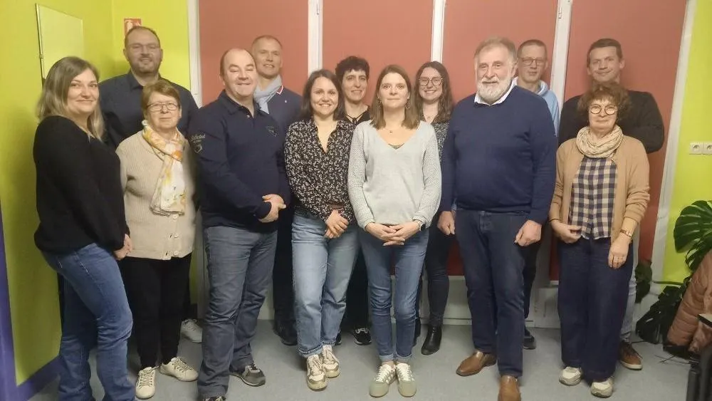 De gauche à droite. Au 1er rang : Stéphanie Bisson, Nicole Launay, Stéphane Durand, Charlotte Miquel, Anaïs Boyer, Jean-Marie Gaudin et Jacqueline Onfray. Au 2e rang : Farid Amghar, Sébastien Ralu, Delphine Guérin, Élodie Sebert, Nicolas Debaize et Thibault Pierre. © Photographe