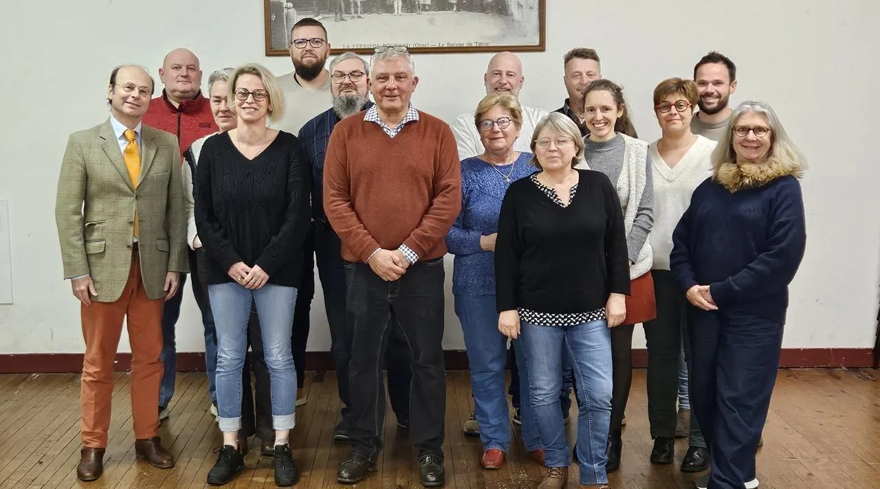 De gauche à droite : Raphaël Alomar, Laurent Lesimple, Laetitia Ramond, Sandra Verhaeghe, François Xavier Mille, Laurent Squivay, Pierre-Yves Devillers, Nicole Fertray, Jérôme Marion, Joëlle Paul, Ludovic Damoiseau, Sixtine Verschoote, Yolande Regnier, Pierre Belloche et Saveria Tirel. © La Ferrière-Bochard Cap 2032