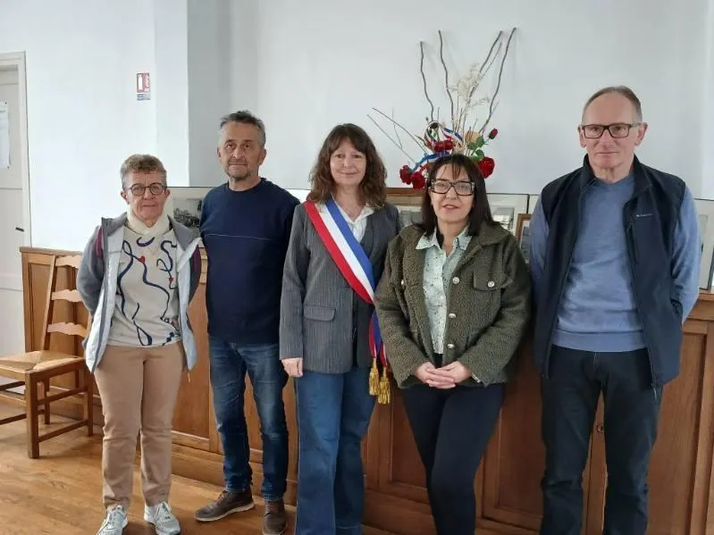 De gauche à droite, la maire et les adjoints de Passais Villages (Orne) : Edith Blanchetière, Christophe Leray, Dominique Morel-Gillot, Maya Ziane et Philippe Forestier. © Photo fournie par la mairie