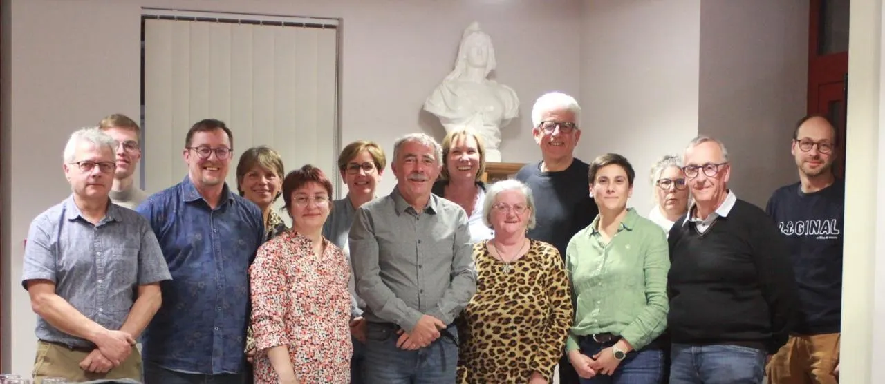 Le nouveau conseil municipal de Saint-Pierre-du-Regard (Orne) avec Christian Jenvrin (au centre en gris), Jean-François Calbris (troisième en partant de la gauche), Aline Pelluet (quatrième en partant de la gauche), Maëlle Guyot (quatrième en partant de la droite) et Dominique Sandret (cinquième en partant de la droite) © Photo fournie par la mairie