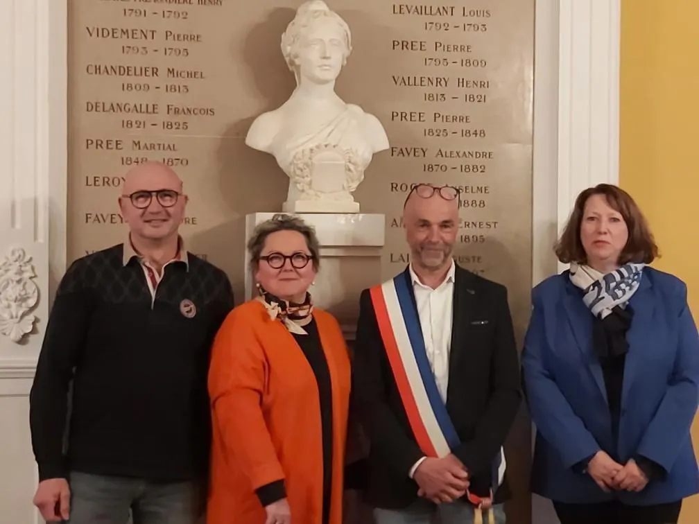 Le maire Vincent Lebreton, fraîchement élu, et ses adjoints (de g. à dr.) : Hervé Broc, Sophie Duval, Florence Écobichon. © Ouest-France