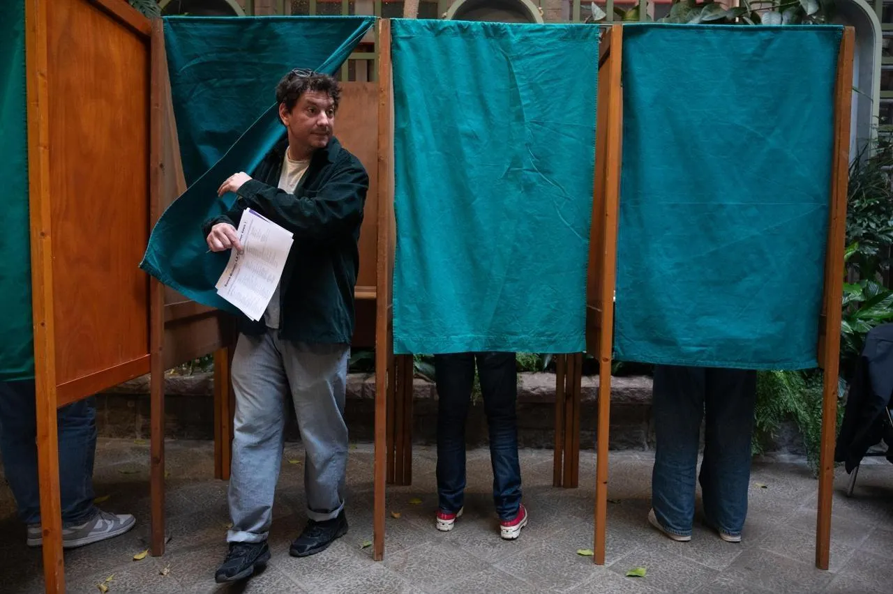 Une personne sort de l’isoloir à l’occasion du second tour des élections municipales, à Saint-Brieuc, le 22 mars 2026. © Elsa Rancel / Ouest-France
