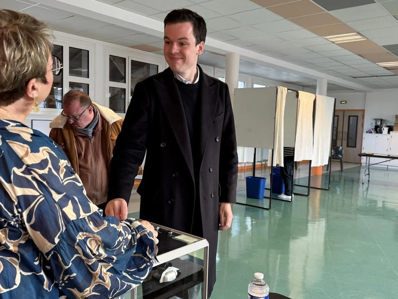 Comme au premier tour, c’est Oscar Piloquet qui a ouvert le bal. Le candidat Rassemblement national - Union des droites pour la République, classé deuxième au premier tour (18,94 % des voix), a voté à 8 h au bureau de vote numéro 3 situé à l’école de Montsort.