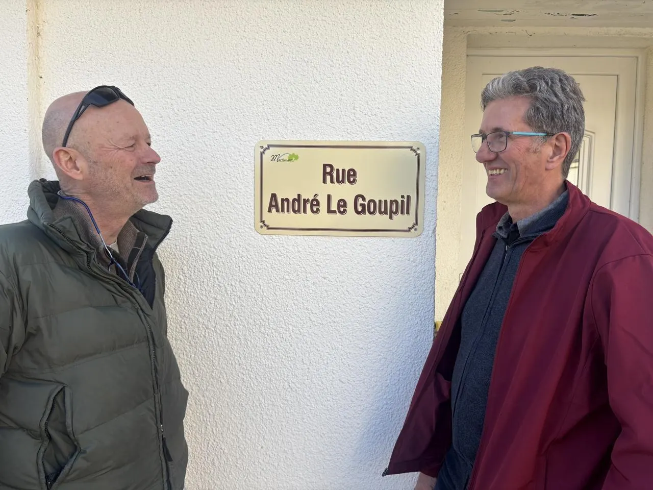André-Jacques Le Goupil (à gauche) avec le maire de Martinvast Jacky Marie qui a débaptisé récemment la rue de l’église au profit d’André Le Goupil… © Ouest-France
