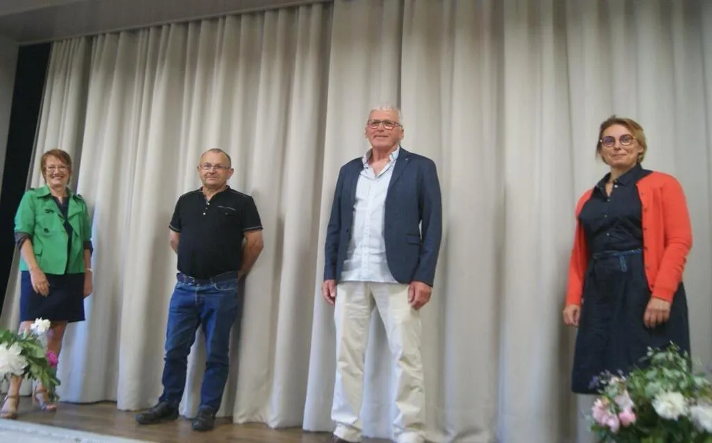 De gauche à droite : la deuxième adjointe Danièle Dupont, le troisième adjoint Raymond Lecellier, le maire Gilles Rabache et la première adjointe, Laurence Cotard. © Ouest-France