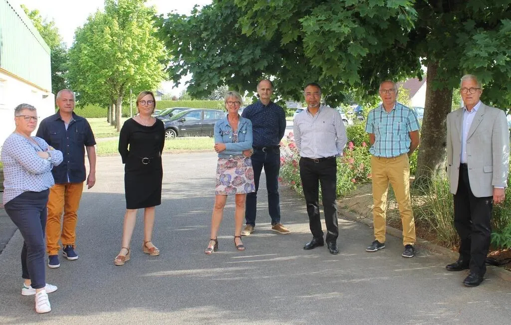 De gauche à droite : Nathalie Grau, deuxième adjointe ; Alain Bethoule, conseiller délégué aux relations extérieures ; Sylvie Breux, quatrième adjointe ; Anita Paillot, maire ; Louis Wintenberger, cinquième adjoint ; Mostafa Zakany, troisième adjoint ; Jean-Louis Battistella, premier adjoint et Alain Lecler, conseiller délégué à l’urbanisme. © Ouest-France