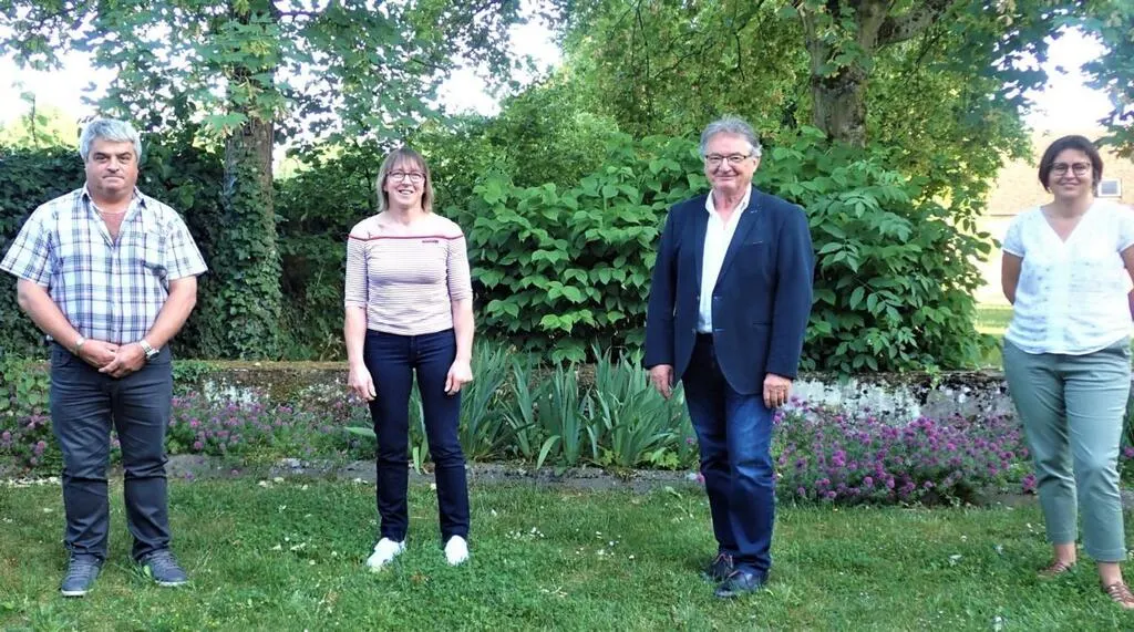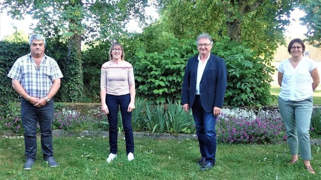 De gauche à droite : Thierry Guillon, deuxième adjoint ; Stéphanie Dordoigne, troisième adjointe ; Daniel Jean, maire et Sabrina Olivier, première adjointe. © Ouest-France