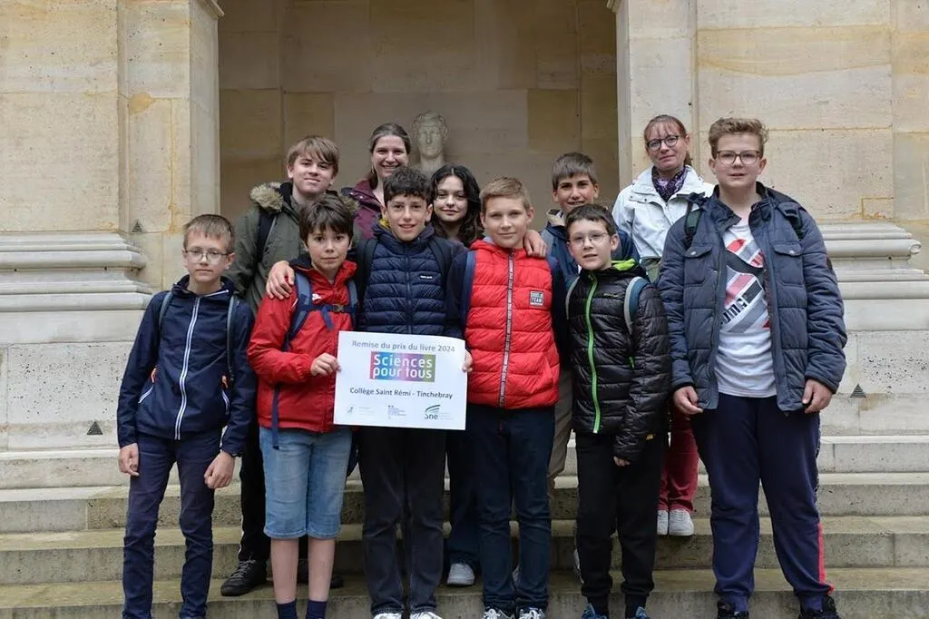 Un groupe de collégiens de Saint-Rémi, à Tinchebray-Bocage (Orne), a été invité à l’Académie des sciences, à Paris, pour assister à la cérémonie de remise des trophées du Prix du livre Sciences pour tous, le 28 mai 2024.