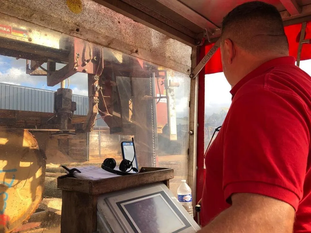 C’est avec une fierté non dissimulée qu’il manie les 30 manettes de la scierie mobile. Chacune a sa fonction, mais ce qui fait véritablement la différence, c’est l’œil de celui qui la pilote. « J’essaye de faire en sorte que la découpe soit la plus nette et la plus droite possible » , explique-t-il. Ainsi, une fois que la grume est emprisonnée dans la machine, la scie découpe de longues planches jusqu’à ce qu’il ne reste plus que la poutre aux dimensions désirées.