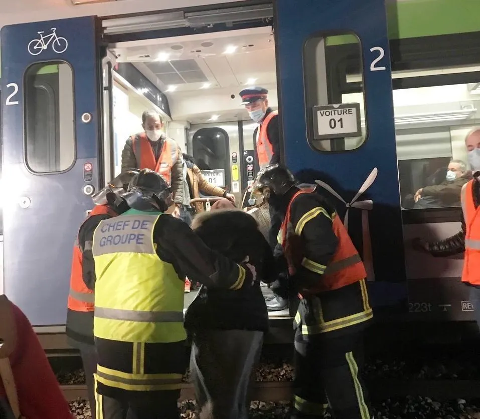 photo les pompiers ont évacué les passagers bloqués dans le train paris-granville immobilisé pendant quatre heures entre argentan et l'aigle. © dr 1