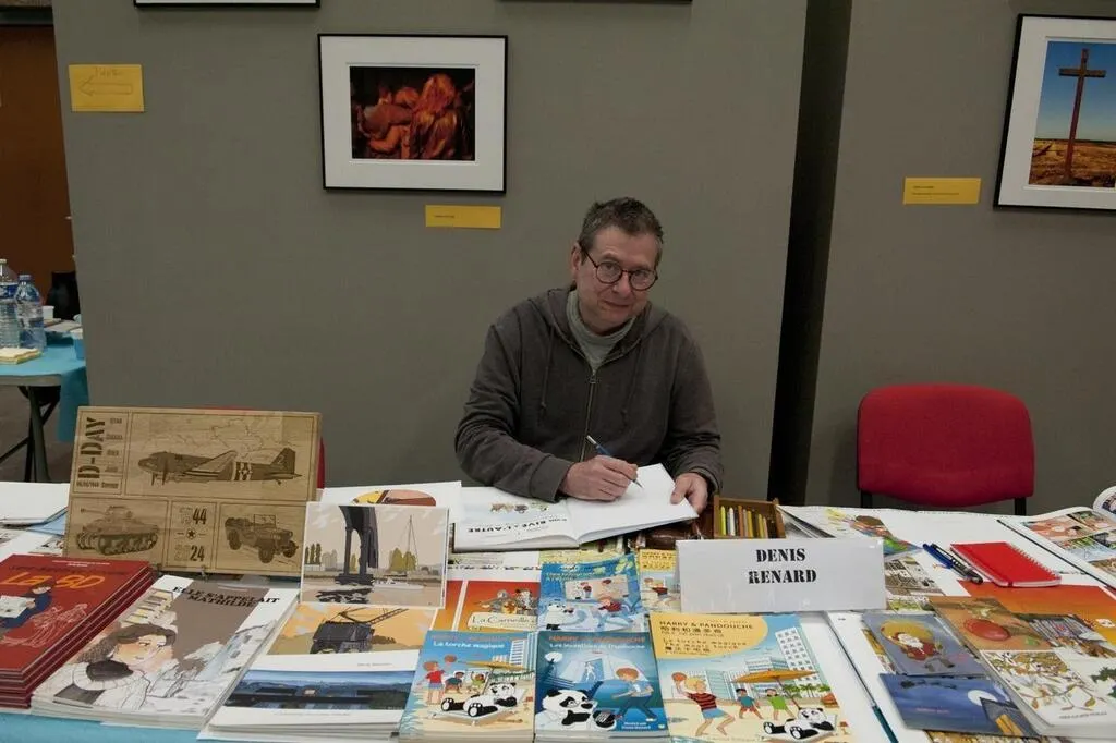 photo  denis renard, présente ses ouvrages, lors du salon du livre des écrivains en suisse normande. « après la carneille, je vais travailler à la réalisation d’une bd autour du château et village de blangy-le-château en pays d’auge. »  ©  photo de presse 1