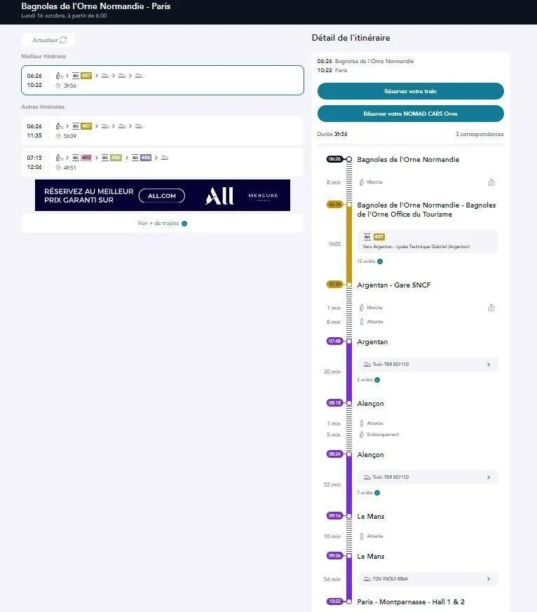 Impossibilité d’obtenir un billet unique, mauvais horaires, complexité des démarches… rejoindre Paris depuis Bagnoles-de-l’Orne est devenu un vrai casse-tête.