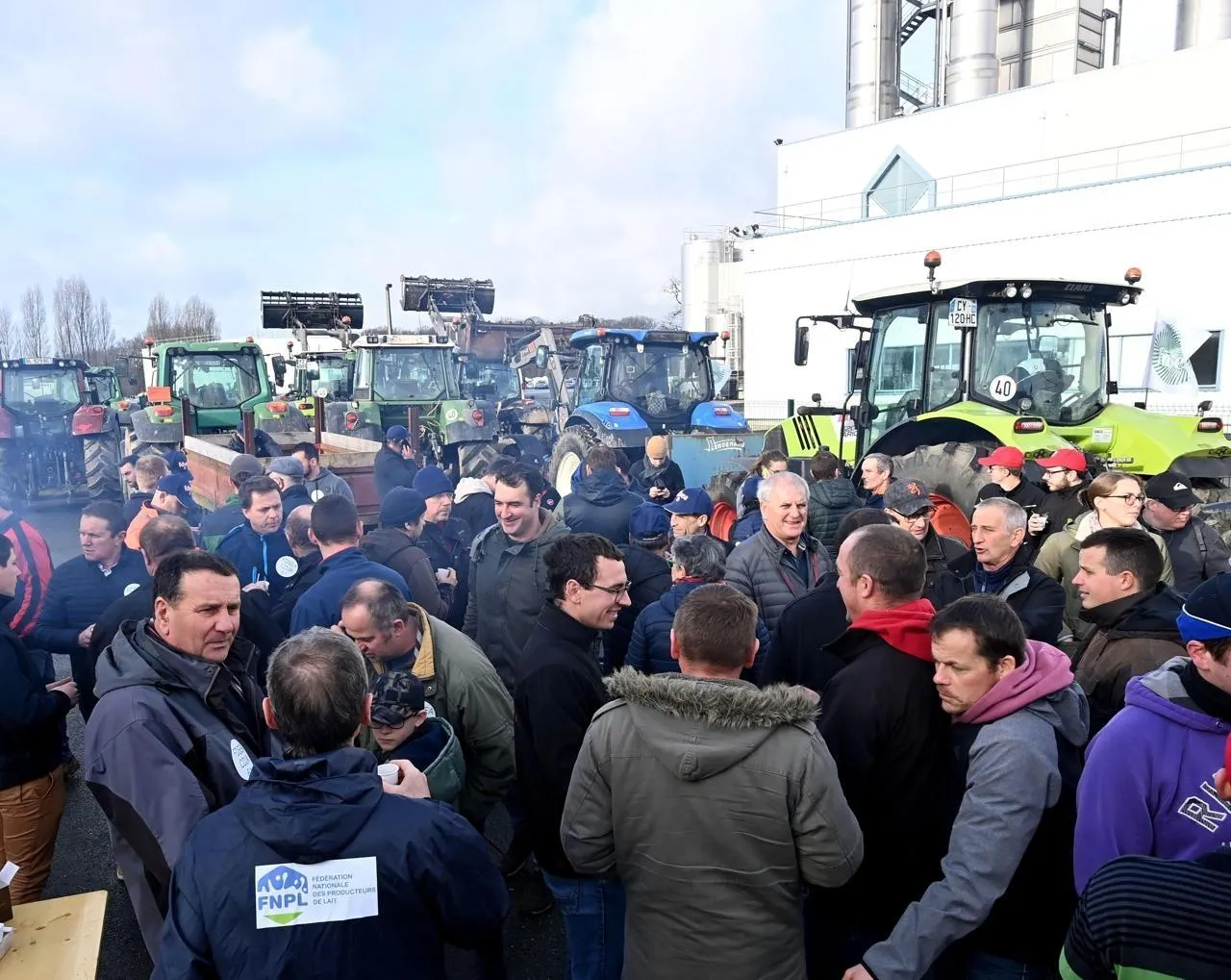 photo  en janvier 2024, une centaine d’agriculteurs s’étaient déplacés devant l’usine lactalis de domfront-en-poiraie, dans l’orne.  ©  joel le gall / ouest-france 1